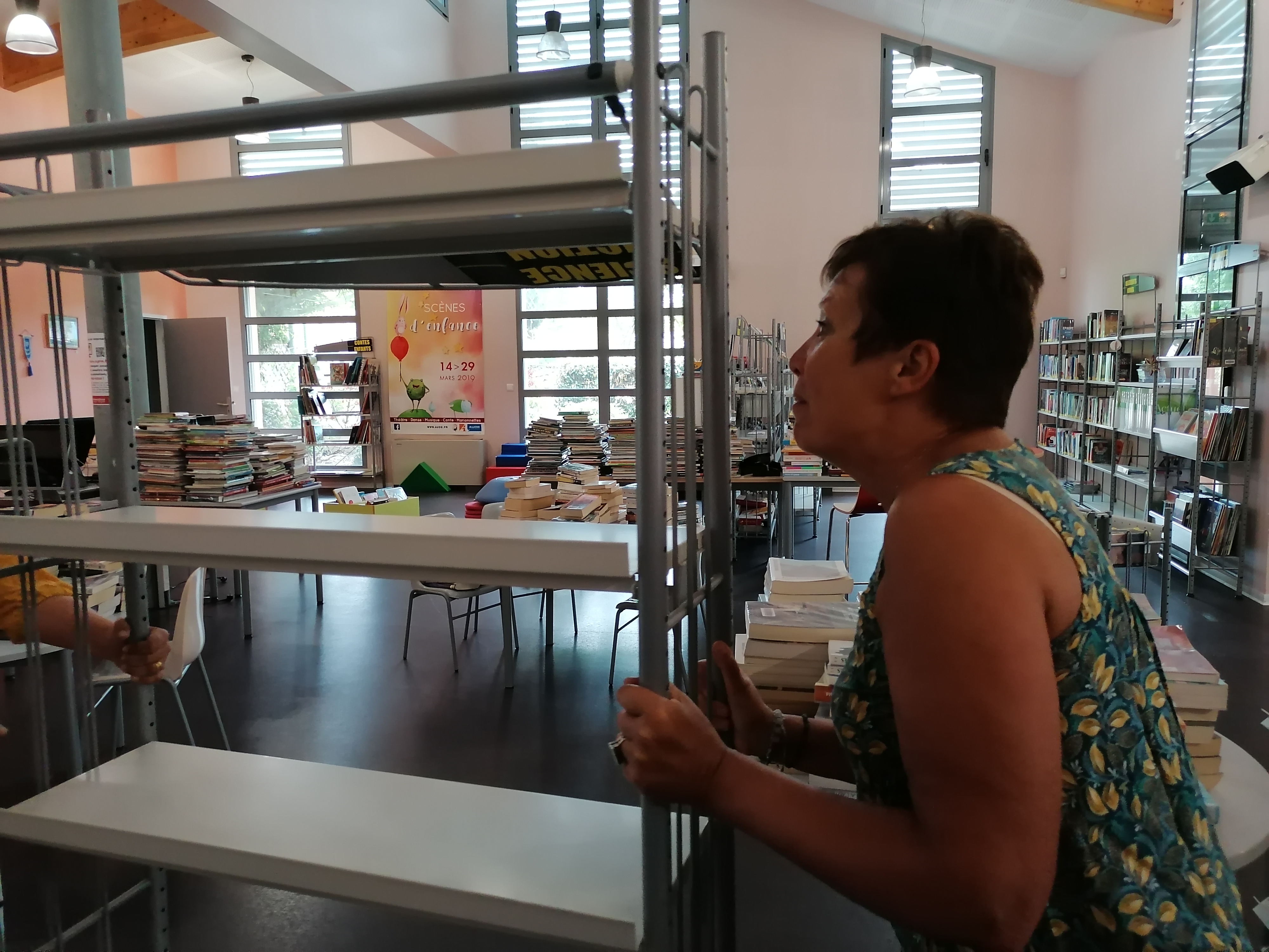 Grâce à son équipe et aux agents de la bibliothèque départementale, la médiathèque peut protéger et stocker ses collections le temps des travaux extérieurs et intérieurs de la toiture.