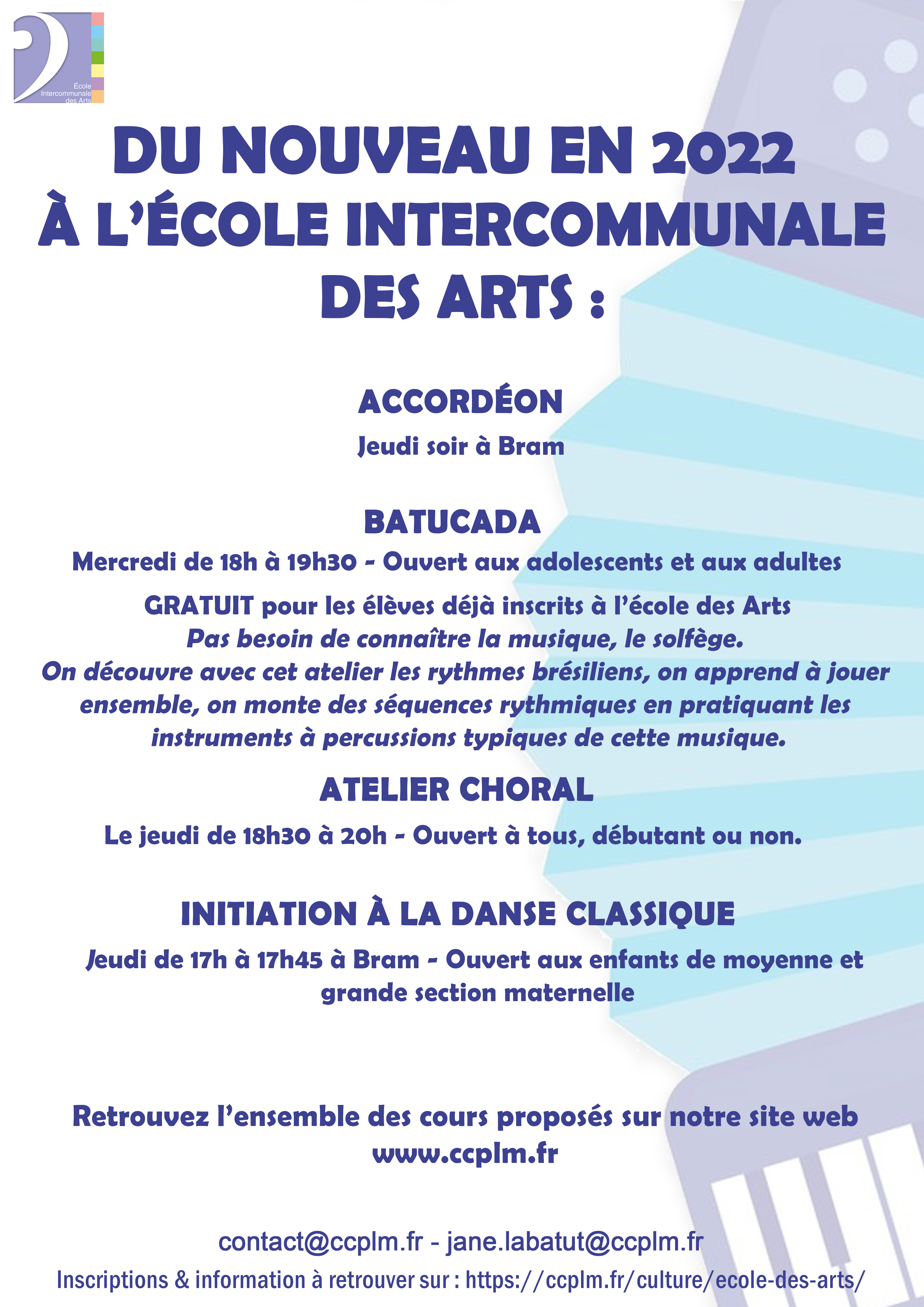 En attendant l’ouverture des cours de l’école des arts le 12 septembre prochain, retour sur les nouveautés proposées par la CCPLM.