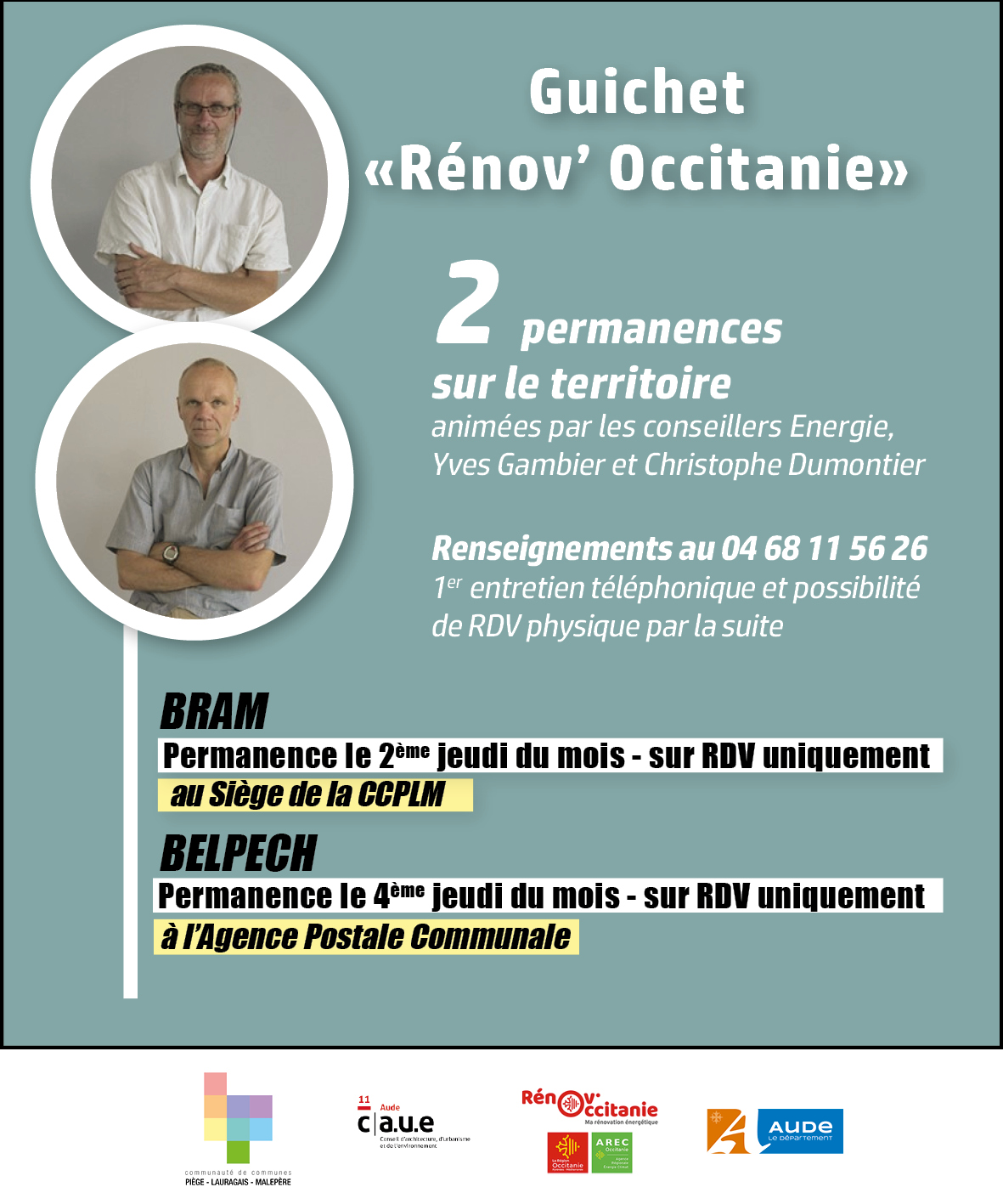 Le guichet de la rénovation énergétique « Rénov Occitanie », porté par le CAUE (conseil d’architecture, d’urbanisme et de l’environnement de l’Aude) et en partenariat avec la Région et le Département de l’Aude, propose aux usagers deux nouvelles permanences dans les locaux de la CCPLM.